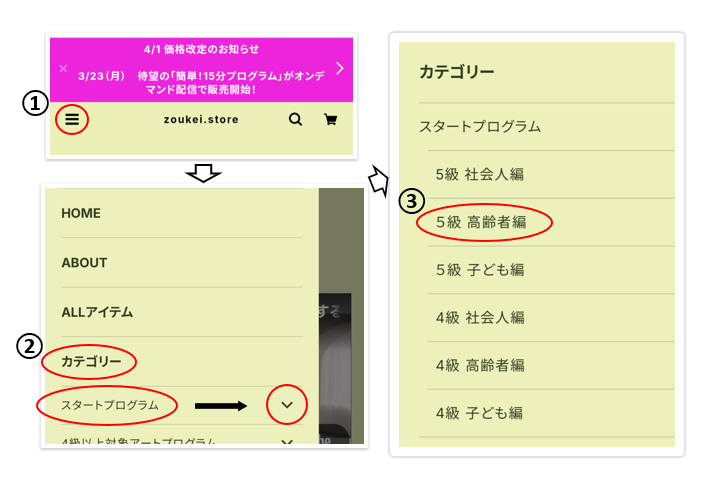 ※「立体かぼちゃ」「さつまいもの量感画」はアートプログラム販売をしていないため、5級テキストをご参照ください。